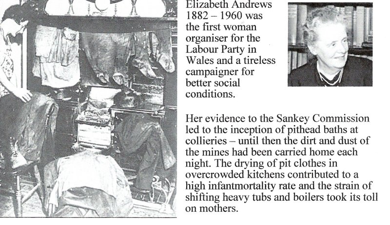 The baths not only raised the status and self-respect of the men, but also made their home life happier by eliminating the dirt, which pit clothing carried into the homes, and the committee were determined to equip every colliery in the district with baths.