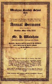 Despite Walters continuing success he never forgot his faith. In 1932 The Wesleyan Sunday School in Chell were having their 58th Annual Sermons (anniversary). Among the notaries was the treasurer, no other than Walter Sylvester. Under Walter's stewardship even during the dark days of the depression the church still managed an income of 61 15s 2d.