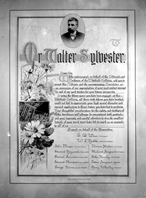 Below is a copy if the illuminated address presented to Walter when he left Chatterley Whitfield over 100 years ago. On the left hand side half way up there is a picture of a miner using his famous invention the "Sylvester." The following words were inscribed.