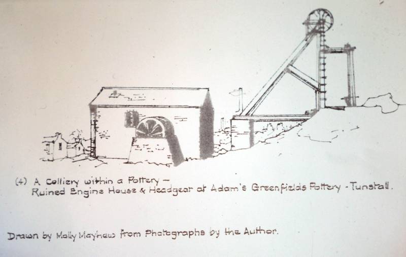 In 1853 William Adams separated from his brothers at Stoke and occupied himself exclusively with the potteries at Greenfield and some neighbouring collieries. In 1858 he bought Newfield Hall from Smith Child. After he died in 1865 the pits were taken over by his son Thomas Adams